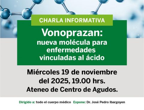 El próximo miércoles 19 de noviembre, a las 19.00 hrs. en el Ateneo del Centro de Agudos se realizará una Charla Informativa sobre «Vonoprazan: nueva molécula para enfermedades vinculadas al ácido» a cargo del Dr. José Pedro Ibargoyen. La misma está dirigida a todo el cuerpo médico de nuestra institución. Por más información sobre inscripción…